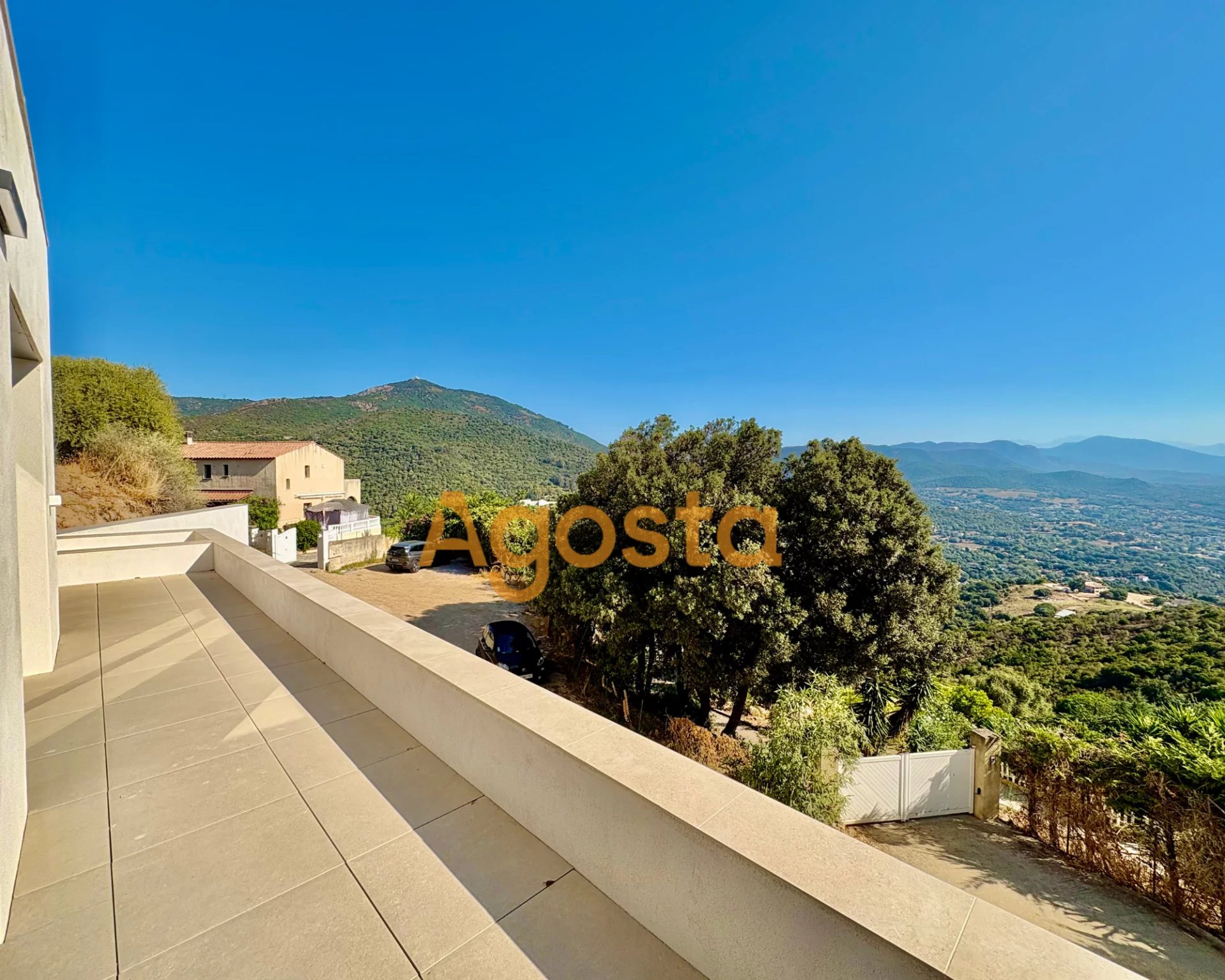 Les deux terrasses profitent d'une vue dégagée sur le maquis et la ville d'Ajaccio.