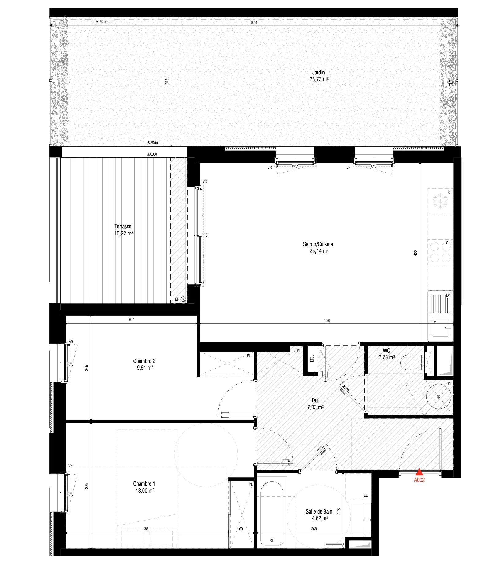 Appartement T3 de 64,68 m² avec terrasse de 10,22 m², jardin de 28,73 m² et parking privé. Les espaces communs sont végétalisés, offrant un cadre agréable et harmonieux. Vous pourrez personnaliser votre intérieur selon vos goûts.