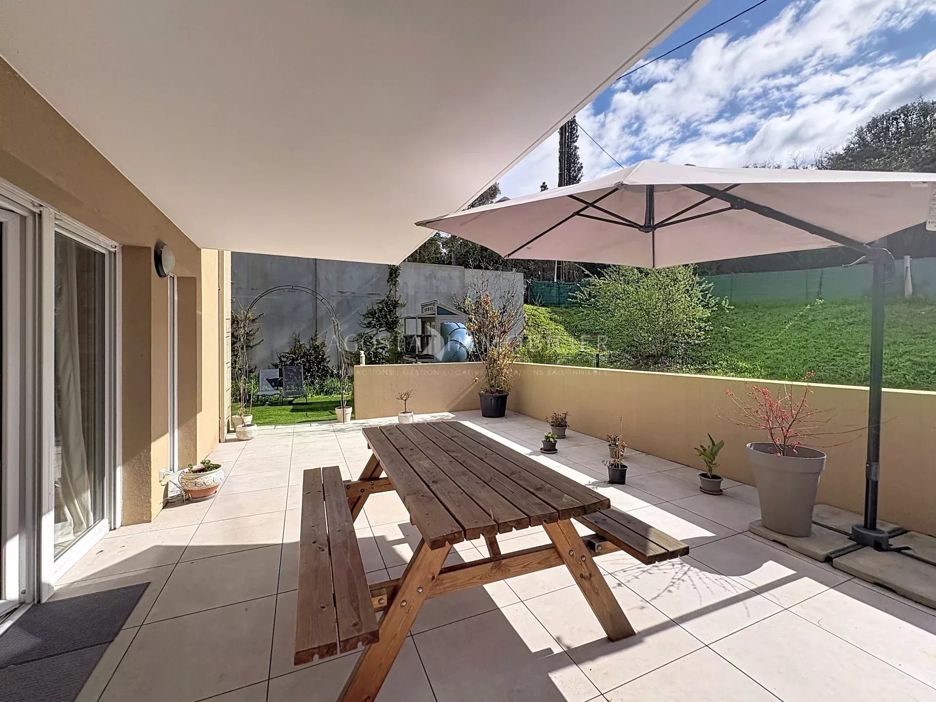 En pignon et en rez-de-jardin, l’appartement profite d’une magnifique terrasse ainsi que de la jouissance d’un jardin privatif de 128 m², exposé sud-ouest, idéal pour profiter pleinement des extérieurs et de la luminosité.