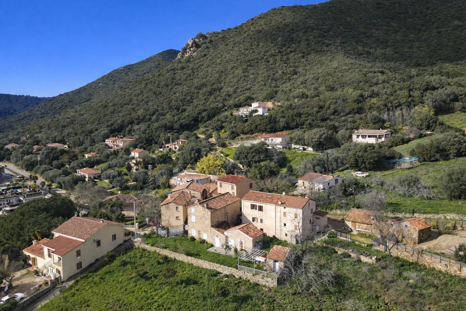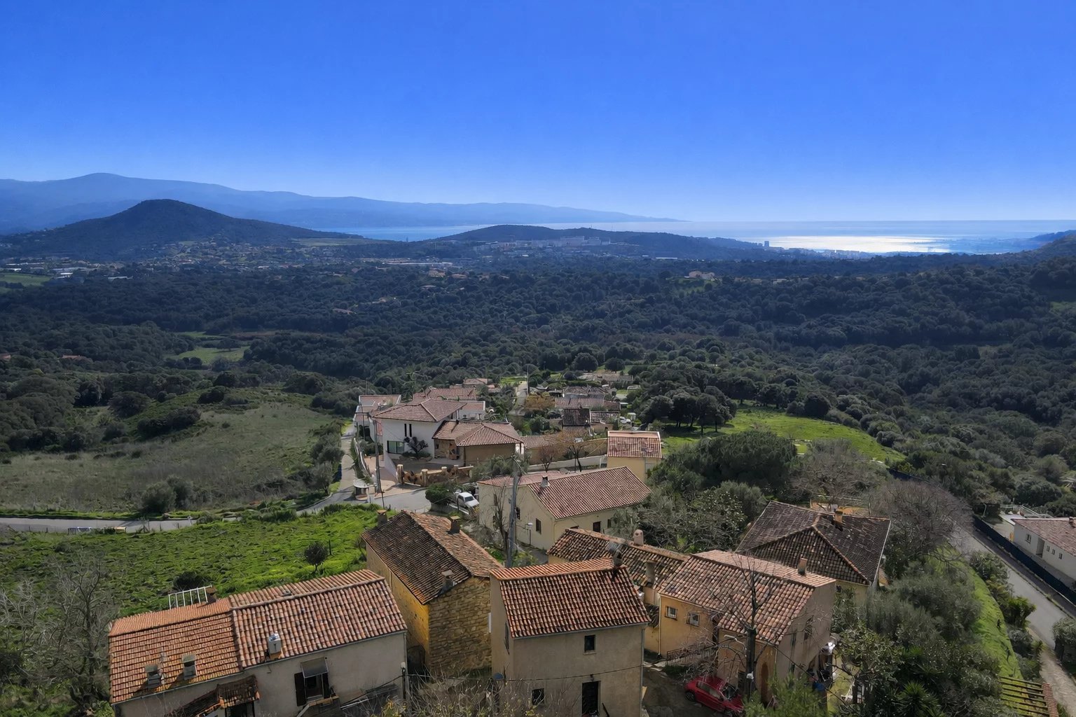 La situation : Alata dispose d’écoles maternelles et primaires, de commerces de proximité, de services de santé, et se situe à environ 20 minutes d’Ajaccio.